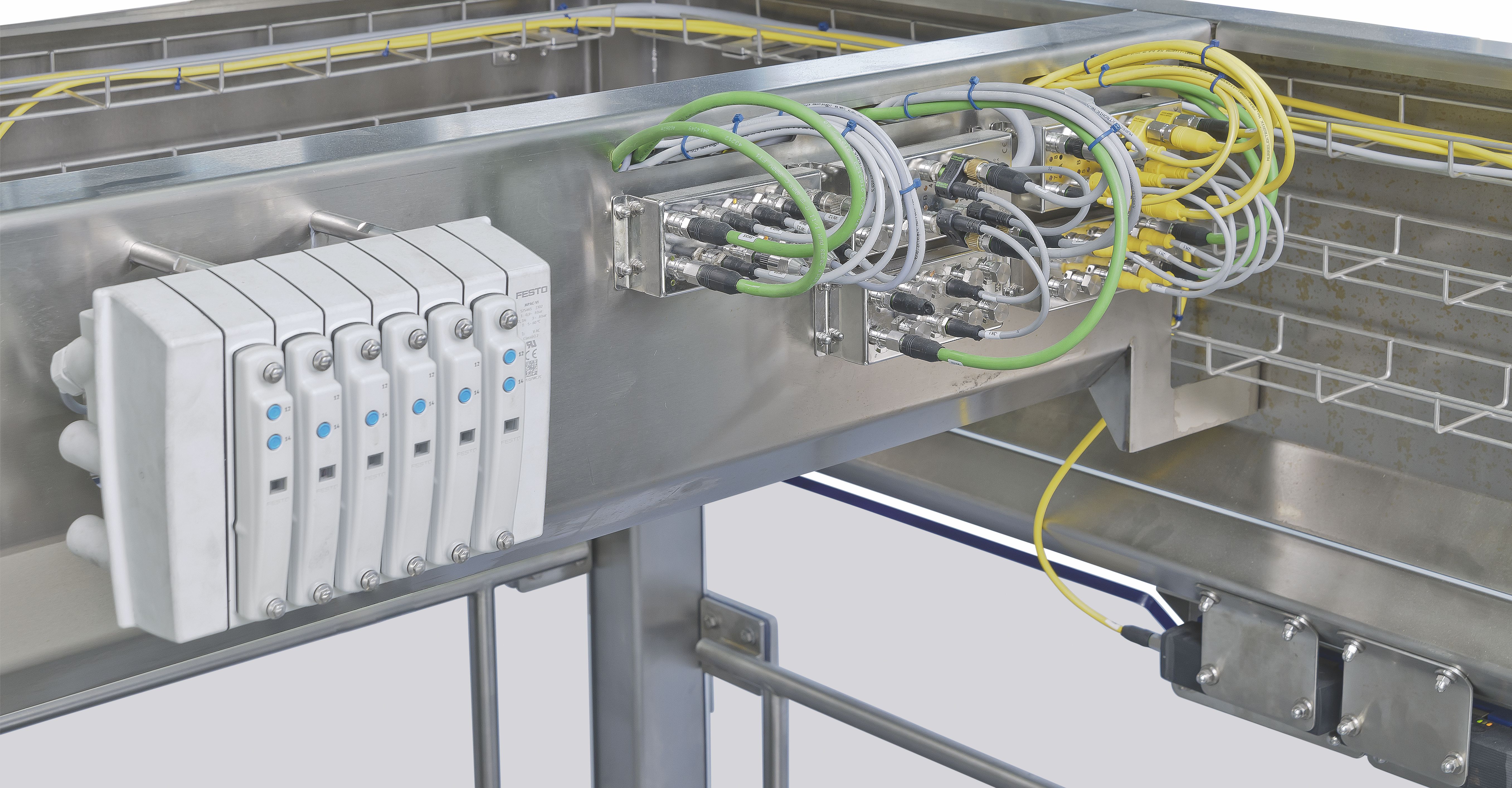 - Parallel wiring of individual cables over stainless steel cable trays in food & beverage applications is extremely complicated. A Cube system, with it’s one cable technology, simplifies wiring efforts.